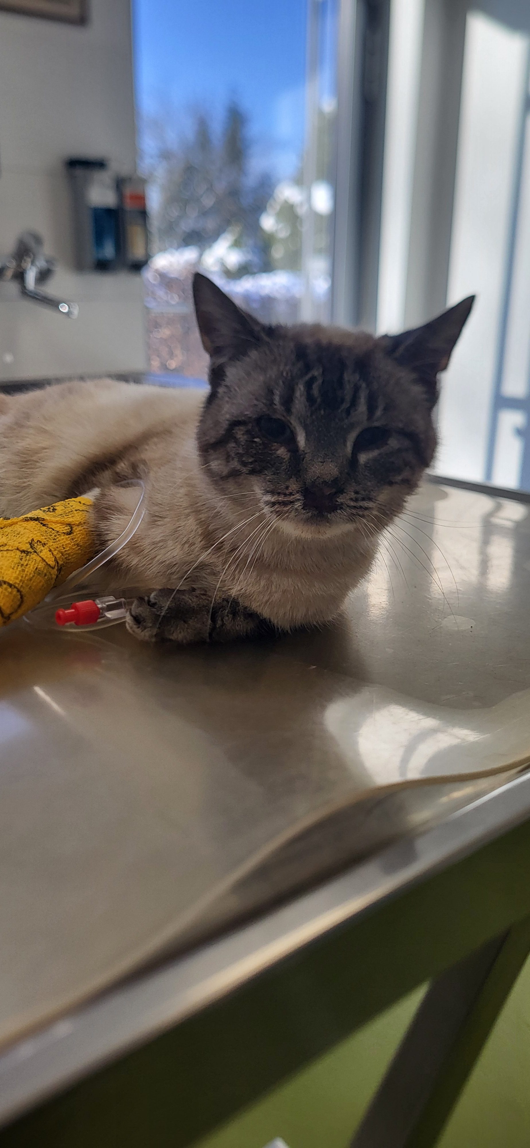 Ich sah das sie an einer Vorderpfote eine Verletzung hat.