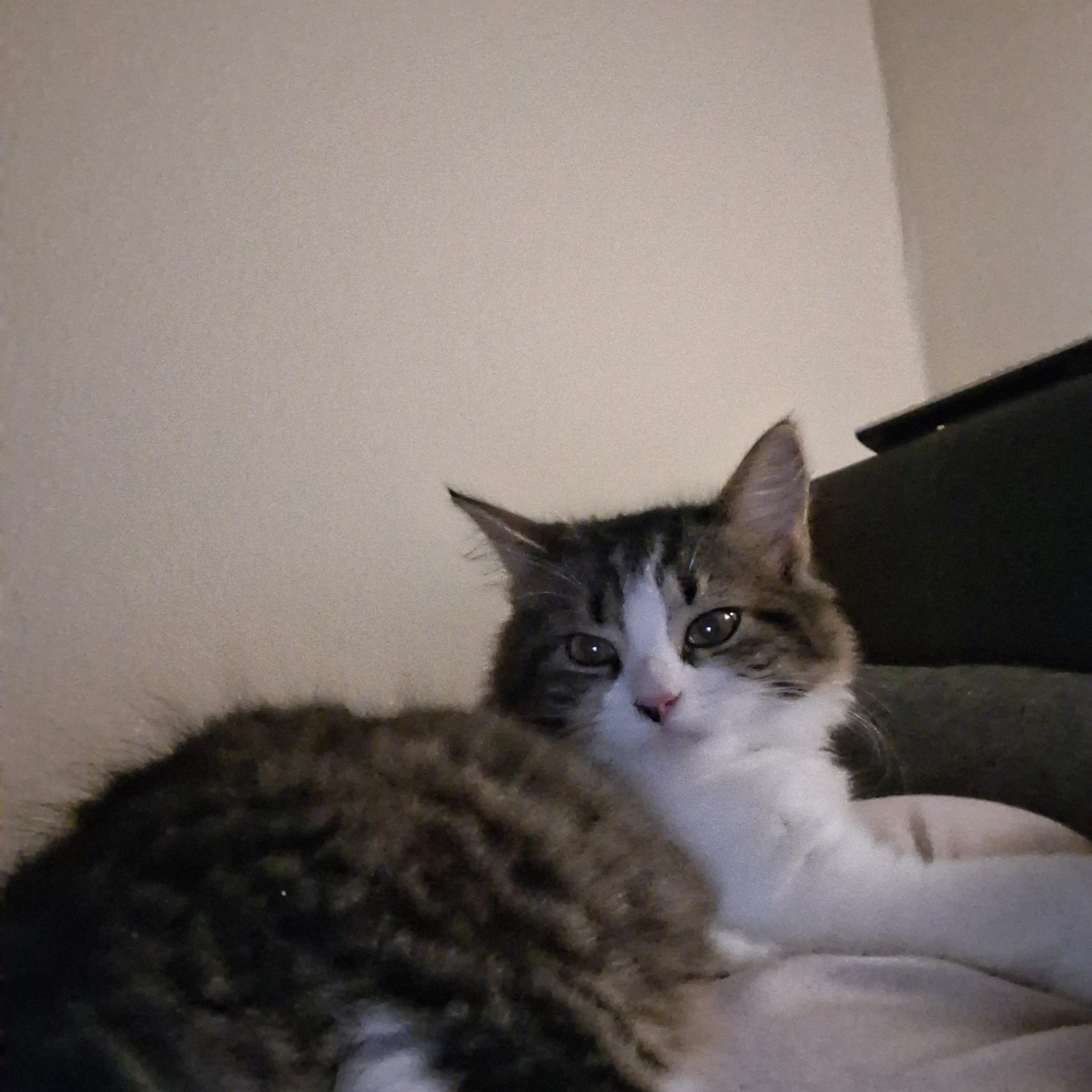 „Manfred“ kam vom ersten Freigang am Hochfeld nicht zurück. Wir haben nach den Vorbesitzern gesucht, die ebenfalls in diesem Gebiet gewohnt haben oder noch wohnen. Eventuell ist er zurückgekehrt, vielleicht irrt er aber auch herum. Der Kater ist 12, gechipt und tätowiert und inzwischen auf mich registriert.