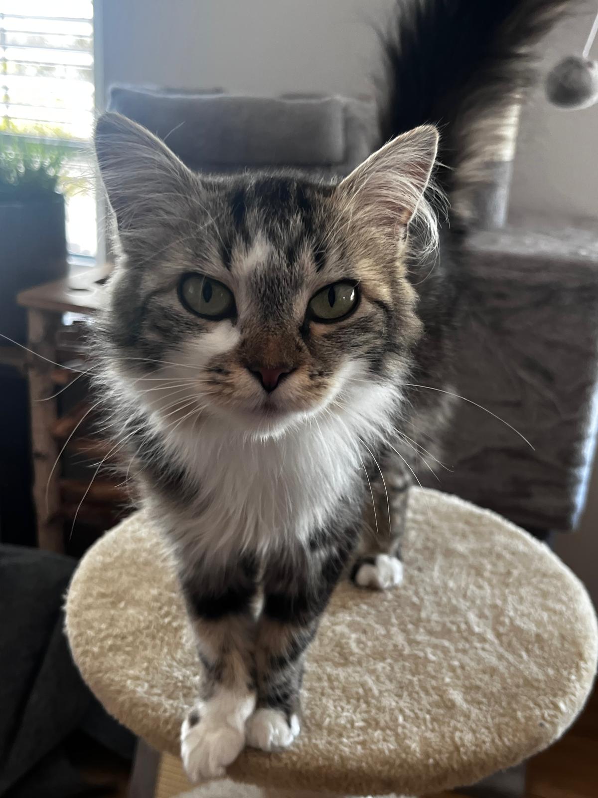 Ella wird seit Sonntag vermisst. Sie ist braun grau schwarz und hat einen weißen Bart. Sie ist ein norwegischer Waldkatzenmix. Sie trägt ein Halsband mit ihrem Namen und unserer Handynummer